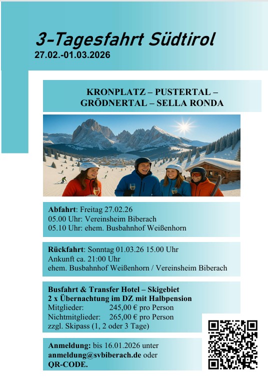 Meldet euch gleich per Mail an >> anmeldung@svbiberach.de